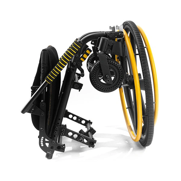 چرخ های این ویلچر در زمان حمل و نقل کاملا جدا می شود و سپس ویلچر از سمت چرخ جلو و پشتی کاملا تا می شود، به گونه ای که در انواع سواری قرار می گیرد و مشکلی برای جابجایی بوجود نمی آورد. محل قرارگیری چرخ های عقب را میتوان در سه حالت عمودی بسته به راحتی فرد مصرف کننده تنظیم نمود و همچنین امکانات تنظیم چرخ عقب در سه حالت طولی محیا می باشد.